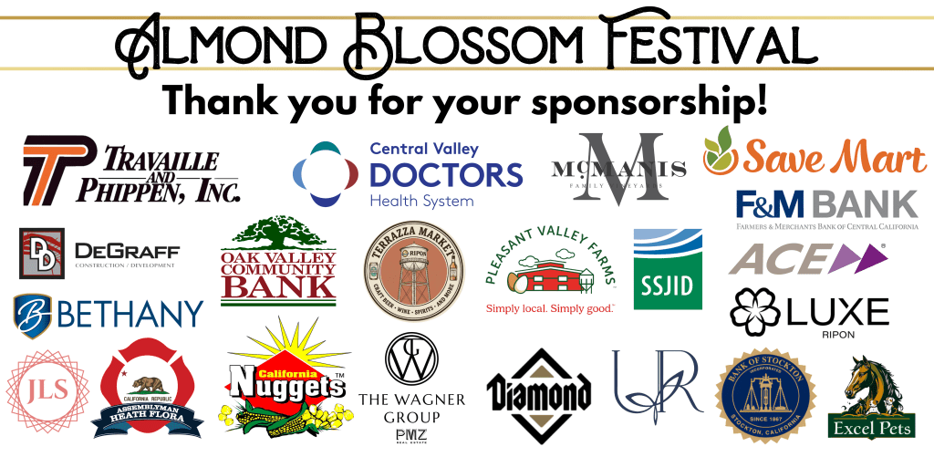 We are proud to present the 65th Annual Almond Blossom Festival, held February 25th-28th. The festival offers endless amounts of local fun from the parade through Downtown, Miss Ripon Queen Coronation, carnival, 1 mile & 8k Fun Run, Diaper Derby, Bake Off, and more! This event could not be done without the support of the community. Help carry on this cherished community tradition!