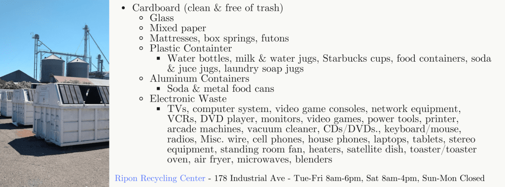 City of Ripon and Services Ripon City Recycling Current City Council Mayor Vice Mayor Council Members